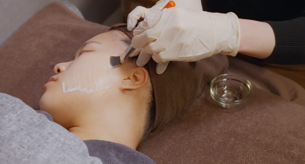 お肌に負担を掛けずに、不要なたんぱく質を取り除いくピーリング効果だけでなく、肌に栄養補給しながら、コラーゲン・エラスチンなどの再生を促し、皮膚を正常な機能へと回復させる事により、しわ、たるみ改善などのアンチエイジング効果が期待できる新しいピーリング施術です。